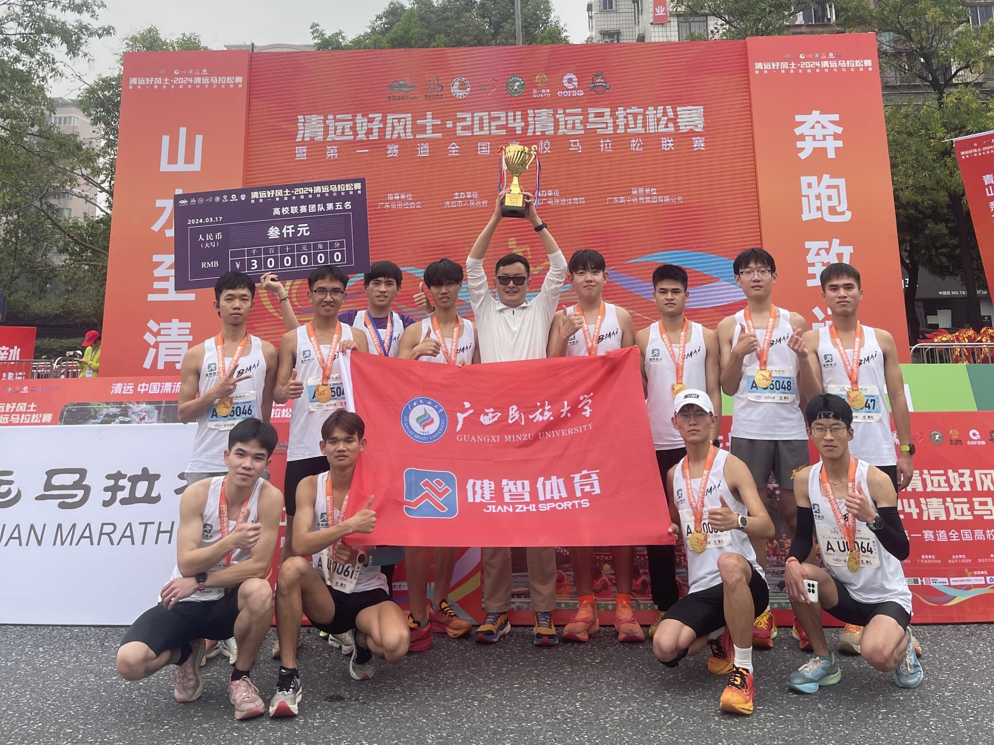 三、3月17日,2024清远马拉松暨第一赛道全国高校马拉松联赛在广东省清远市体育馆开赛。我校共13名学子和校友参赛,经过与其他109所学校的5629名选手角逐,我校最终取得第二名的成绩,校友熊正强取得全程马拉松竞赛第一名和高校联赛全程马拉松第一名,体育与健康科学学院张庆敏取得半程马拉松竞赛第四名和高校联赛半程马拉松第一名的成绩。