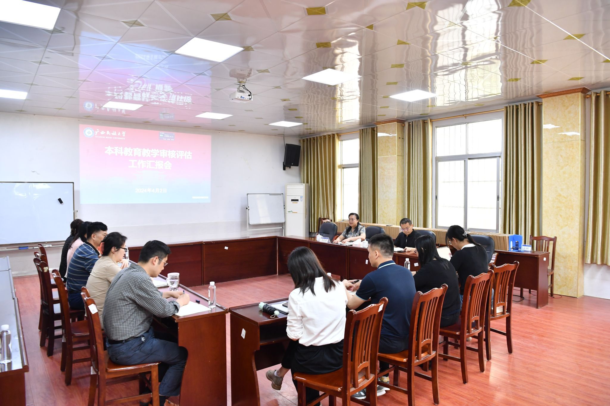 二、4月2日上午,校长韦仕珍在博雅楼220室主持召开本科教育教学审核评估工作汇报会,有关职能部门负责人及评估办人员与会。韦校长对迎评准备给予肯定,并对下阶段评估工作做出全面部署,强调教育教学核心地位,要求全校上下强化责任,密切配合,保质保量按时完成各项筹备任务。同时,聚焦立德树人,创新教学理念,提升教学质量与管理效能,加强对外联络,确保评估工作顺利进行,并构建迎评长效机制,持续推进教育教学改革。