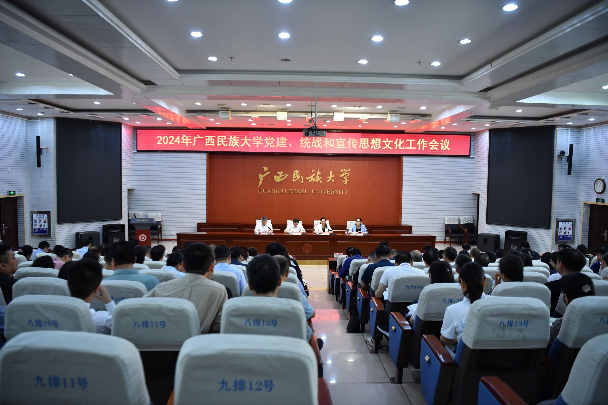 四、4月2日,2024年我校党建、统战和宣传思想文化工作会议在科技楼报告厅召开,校党委书记卞成林,党委副书记、校长韦仕珍,校领导陈铭彬、韦雪芳、蔡高根、黄晓娟、何立荣出席会议。学校全体中层领导干部与会。